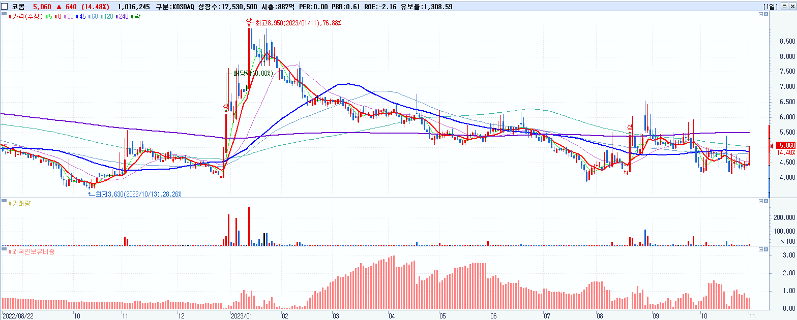 시총: 888억 거래량: 14,331,759 거래대금:414억