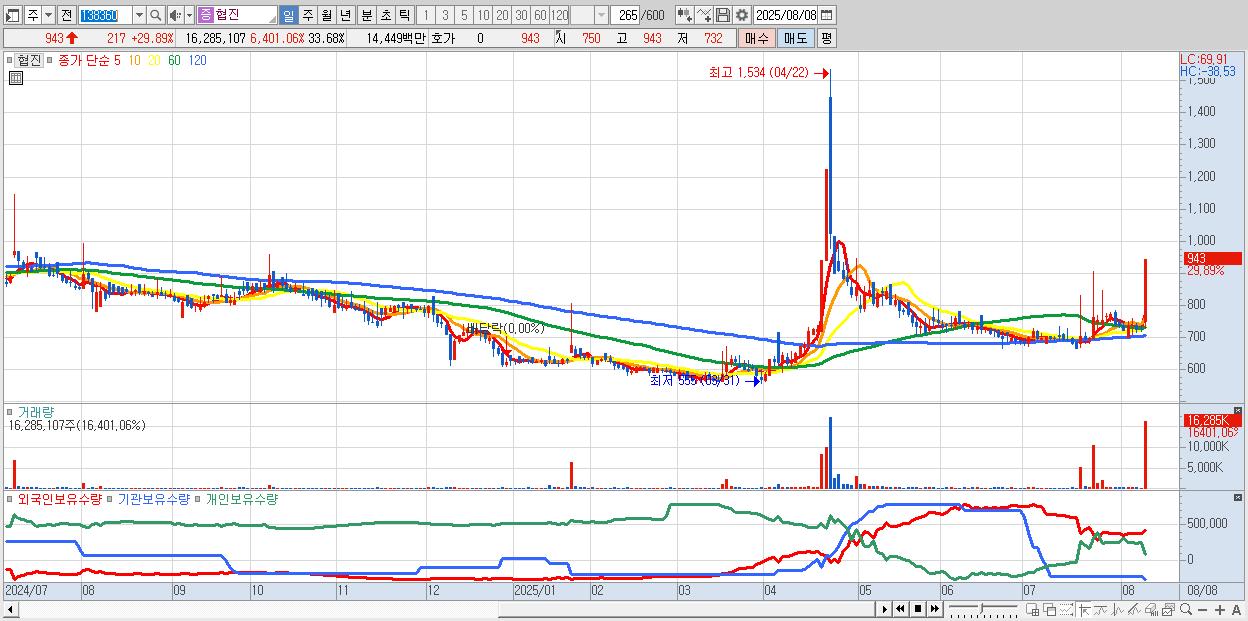 - 협진 (943원 ▲ 29.89% , 시총: 456억, 거래량: 16,285,107, 거래대금:144억)