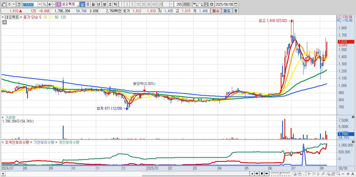- 네오펙트 (1,610원 ▲ 8.64% , 시총: 779억, 거래량: 1,786,394, 거래대금:28억)