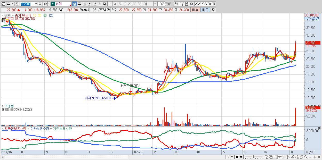 - 심텍 (27,850원 ▲ 18.01% , 시총: 8,913억, 거래량: 5,398,665, 거래대금:1,478억)