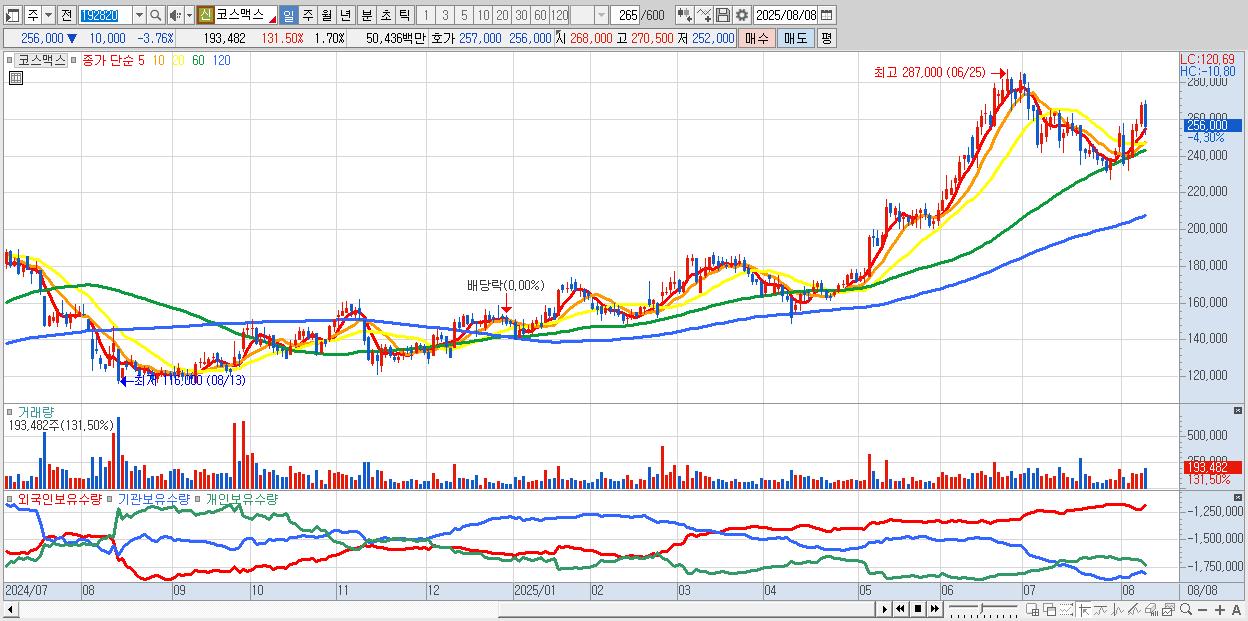 2025-08-01 목표주가: 450,000 투자의견: BUY 상승여력: 23.29% 제공처:하나증권/유재선