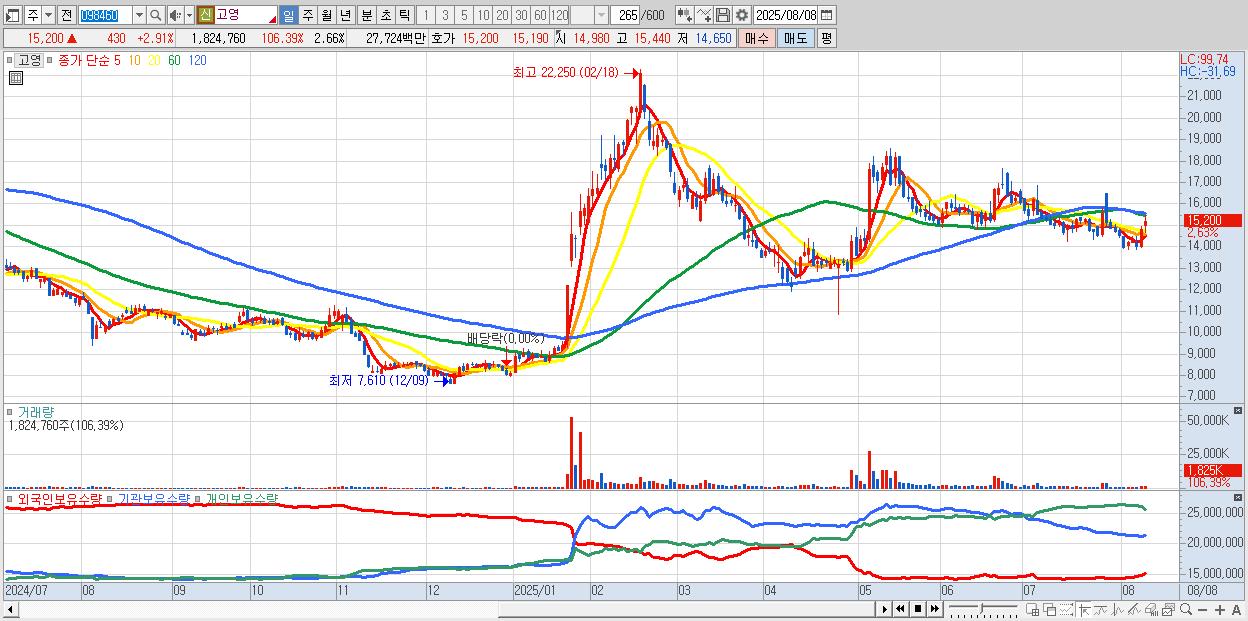 - 고영 (15,190원 ▲ 2.84% , 시총: 10,429억, 외국인 순매수 거래금:64억)