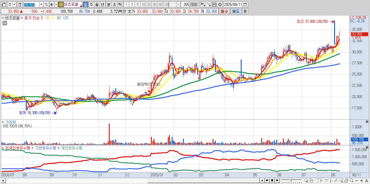 비츠로셀 33,950원 ▲ 1.49% (KOSDAQ, 082920)