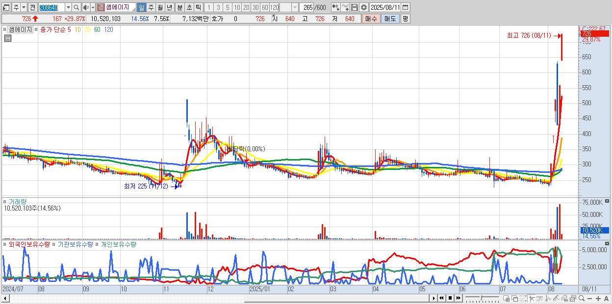 썸에이지 726원 ▲ 29.87% (KOSDAQ, 208640)