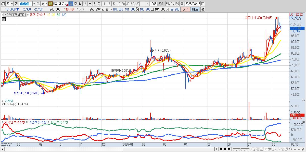 30.HD현대건설기계 101,300원 ▼ -3.06% (KOSPI, 267270)
