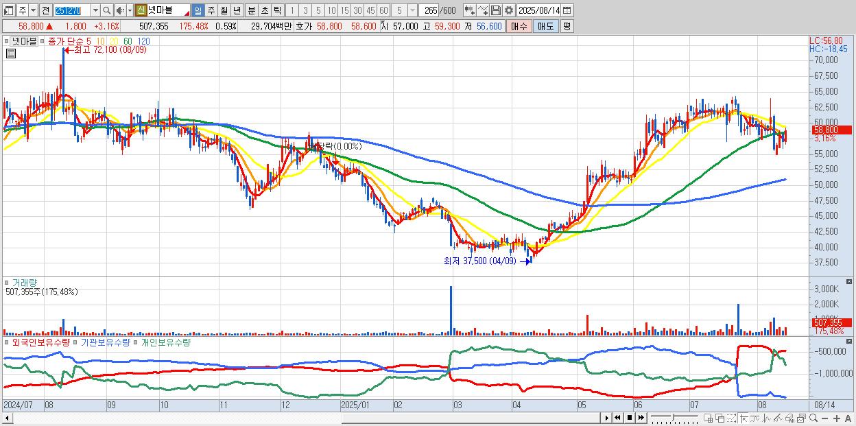 | 2025-08-14 | 67억 | 0억 | -8억 | -2억 | -56억 |