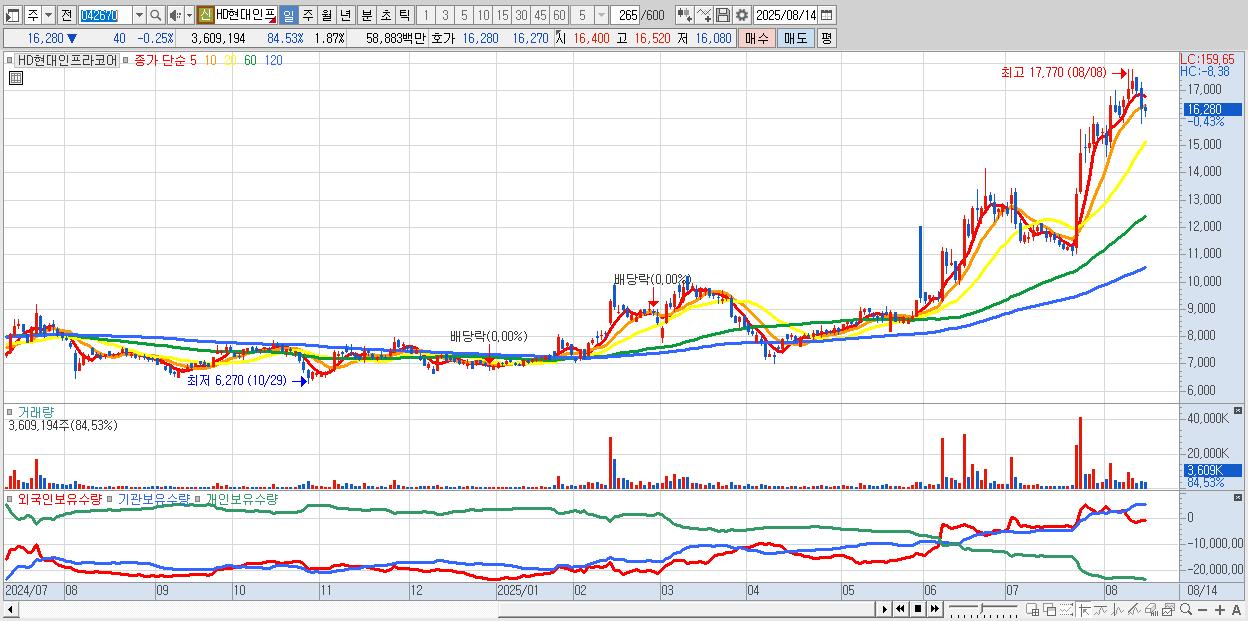 30.HD현대인프라코어 16,270원 ▼ -0.31% (KOSPI, 042670)