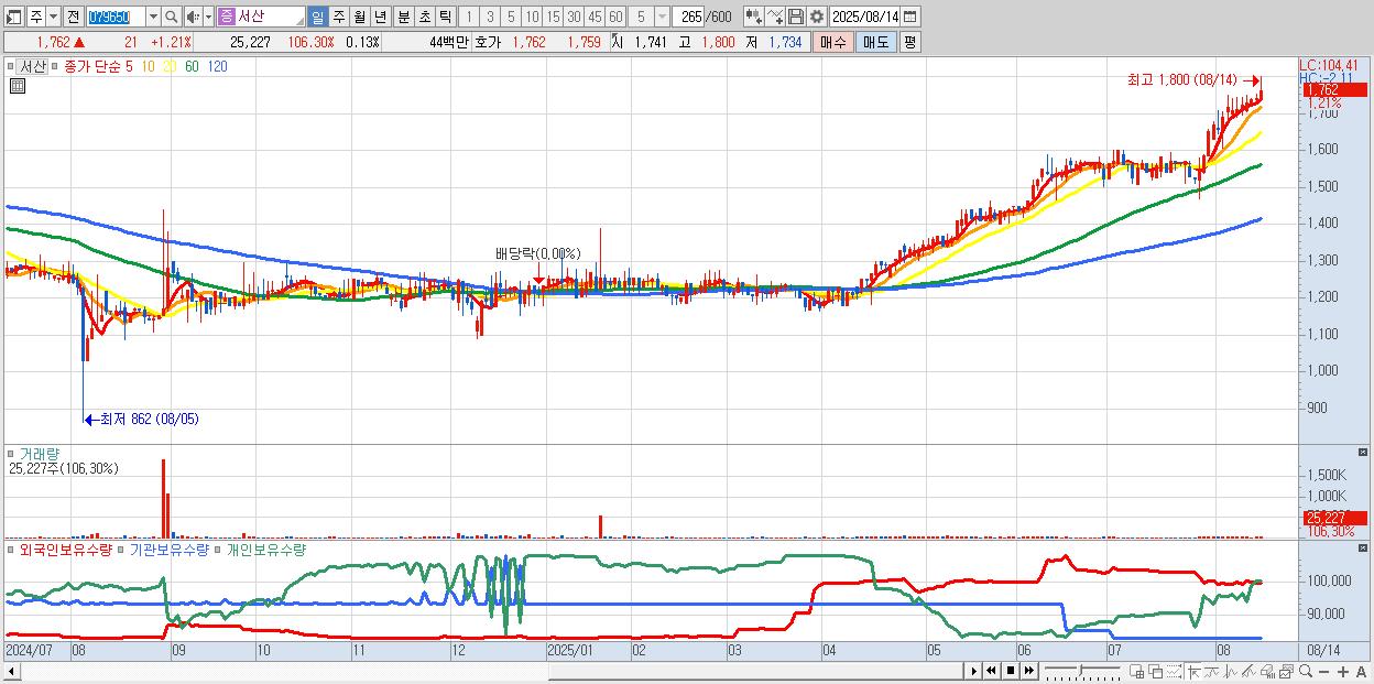 서산 1,762원 ▲ 1.21% (KOSDAQ, 079650)