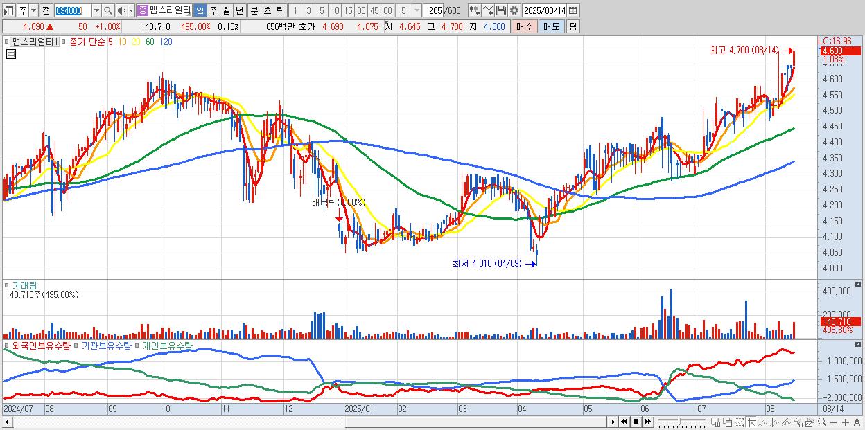 맵스리얼티1 4,690원 ▲ 1.08% (KOSPI, 094800)