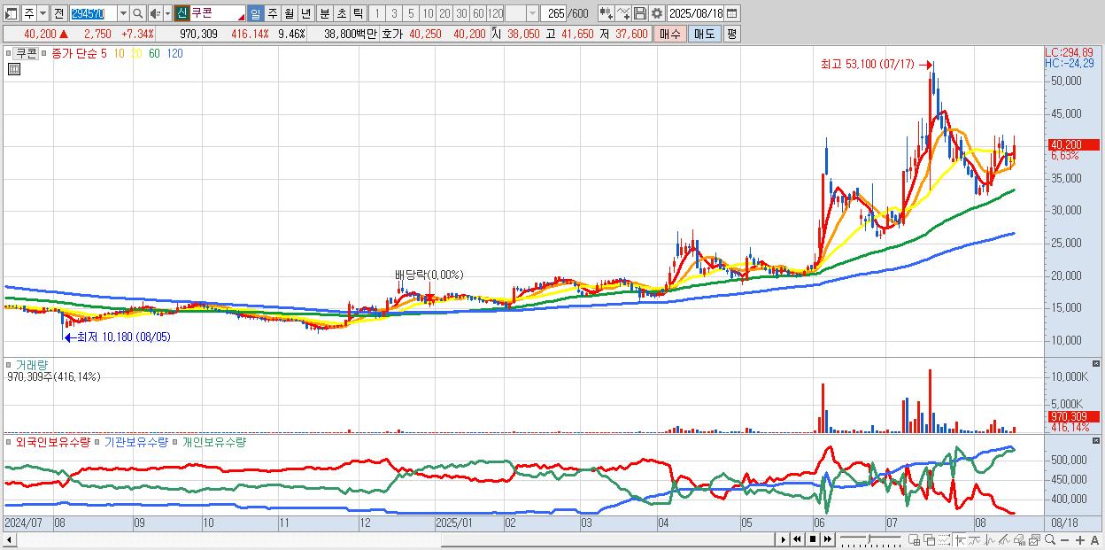 - 쿠콘 (40,750원 ▲ 8.81% , 시총: 4,179억, 거래량: 319,227, 거래대금:127억)