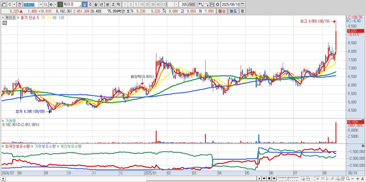 - 케이프 (9,220원 ▲ 18.81% , 시총: 2,849억, 거래량: 8,182,361, 거래대금:760억)