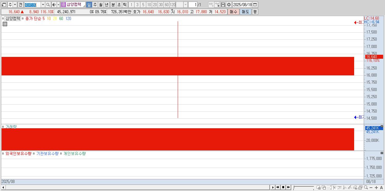 1.삼양컴텍 16,640원 ▲ 116.1% (KOSDAQ, 484590)