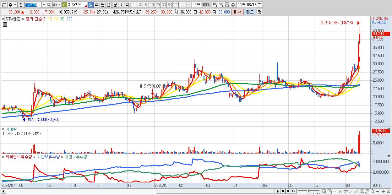 - STX엔진 (38,600원 ▲ 6.34% , 시총: 15,497억, 거래량: 6,378,177, 거래대금:2,477억, KOSPI)