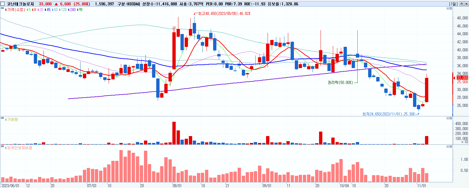 5.코난테크놀로지 33,000원 ▲ 25% (KOSDAQ, 402030)