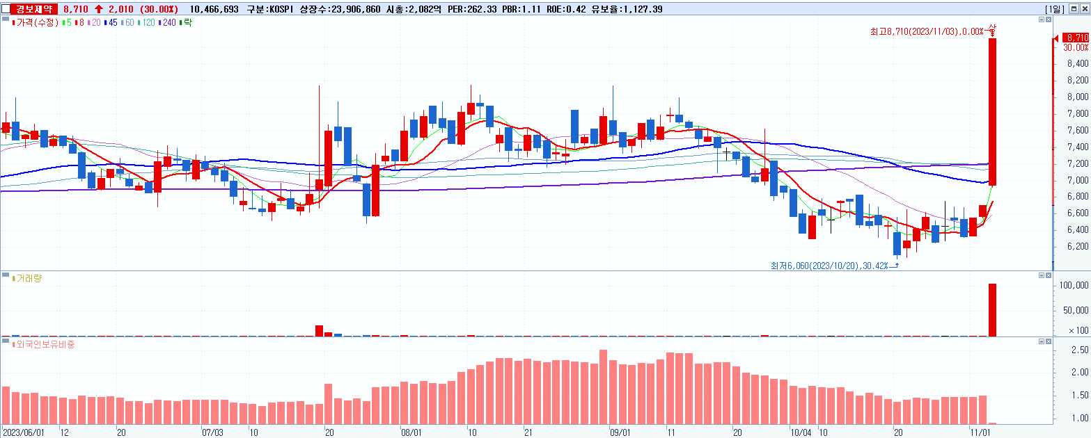 1.경보제약 8,710원 ▲ 30% (KOSPI, 214390)