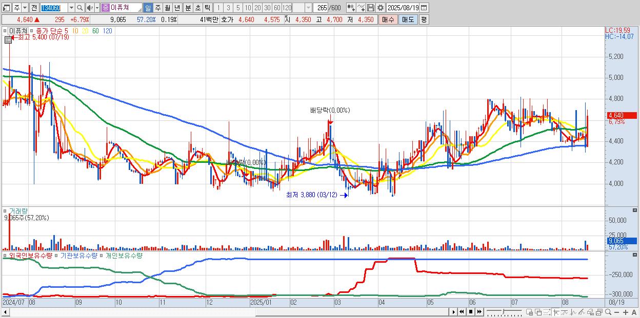 30.이퓨쳐 4,640원 ▲ 6.79% (KOSDAQ, 134060)