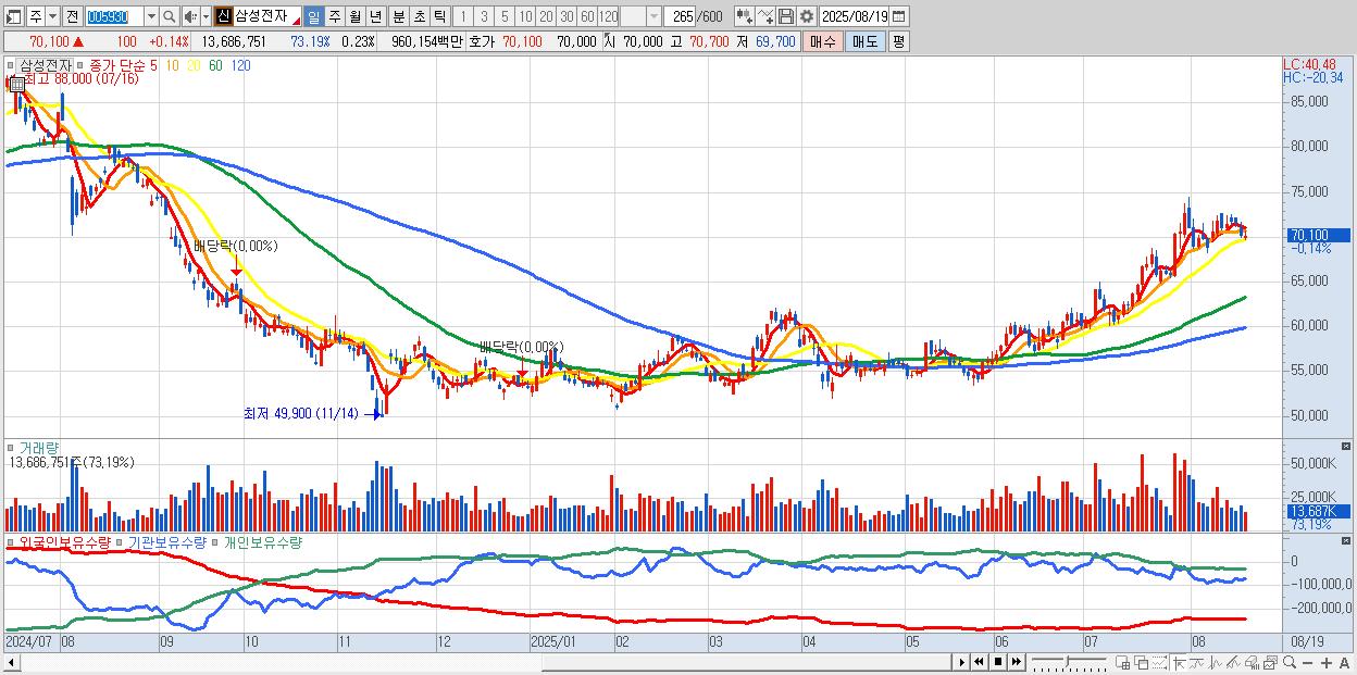 1.삼성전자 70,000원 0% (KOSPI, 005930)