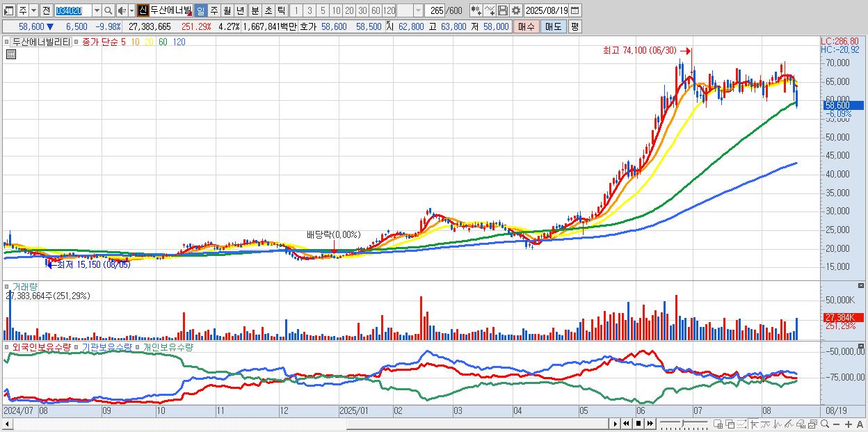 - 두산에너빌리티 (59,500원 ▼ -8.6% , 시총: 381,134억, 거래량: 11,588,978, 거래대금:7,092억)