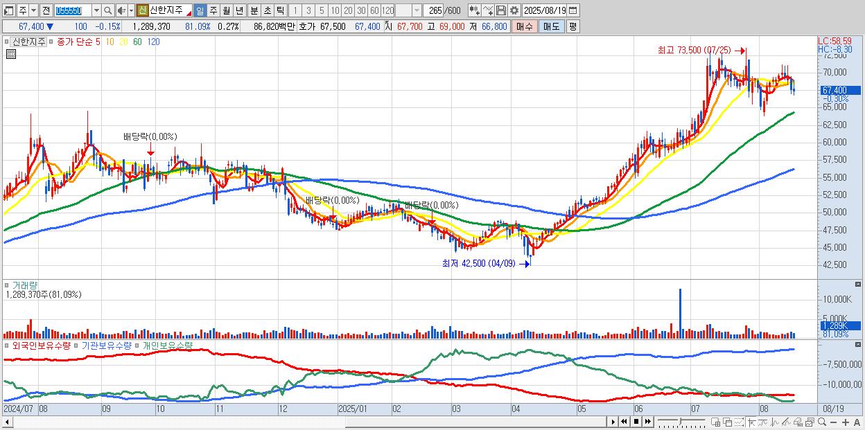 30.신한지주 67,400원 ▼ -0.15% (KOSPI, 055550)