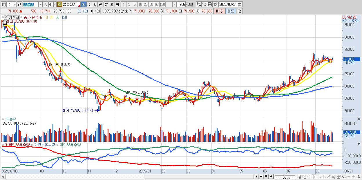 | 2025-08-12 | 385억 | -8억 | -254억 | 676억 | -798억 |