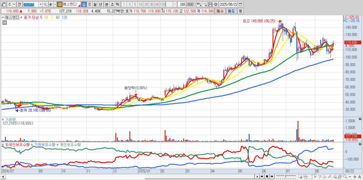 30.에스앤디 121,000원 ▲ 8.33% (KOSDAQ, 260970)