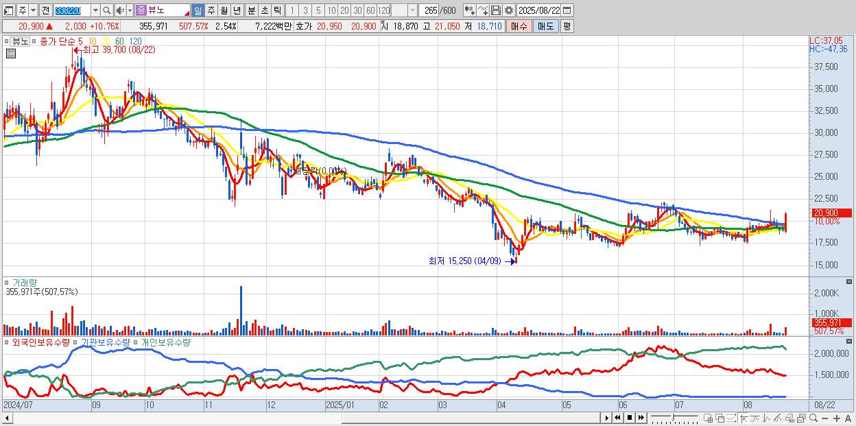 - 뷰노 (20,850원 ▲ 10.49% , 시총: 2,919억, 거래량: 197,203, 거래대금:40억)