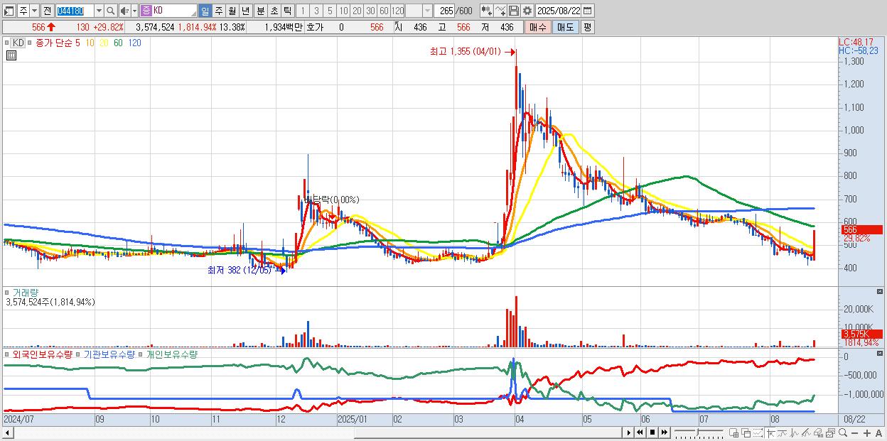 2.KD 566원 ▲ 29.82% (KOSDAQ, 044180)