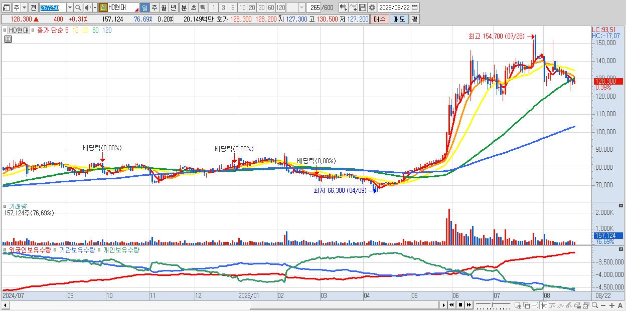 30.HD현대 128,400원 ▲ 0.39% (KOSPI, 267250)