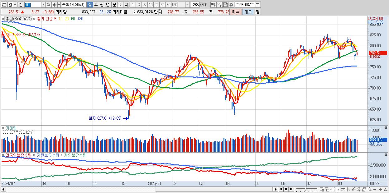 | 08/22 | 782.51 | ▲0.68% | -311억 | 649억 | -92억 | -246억 |