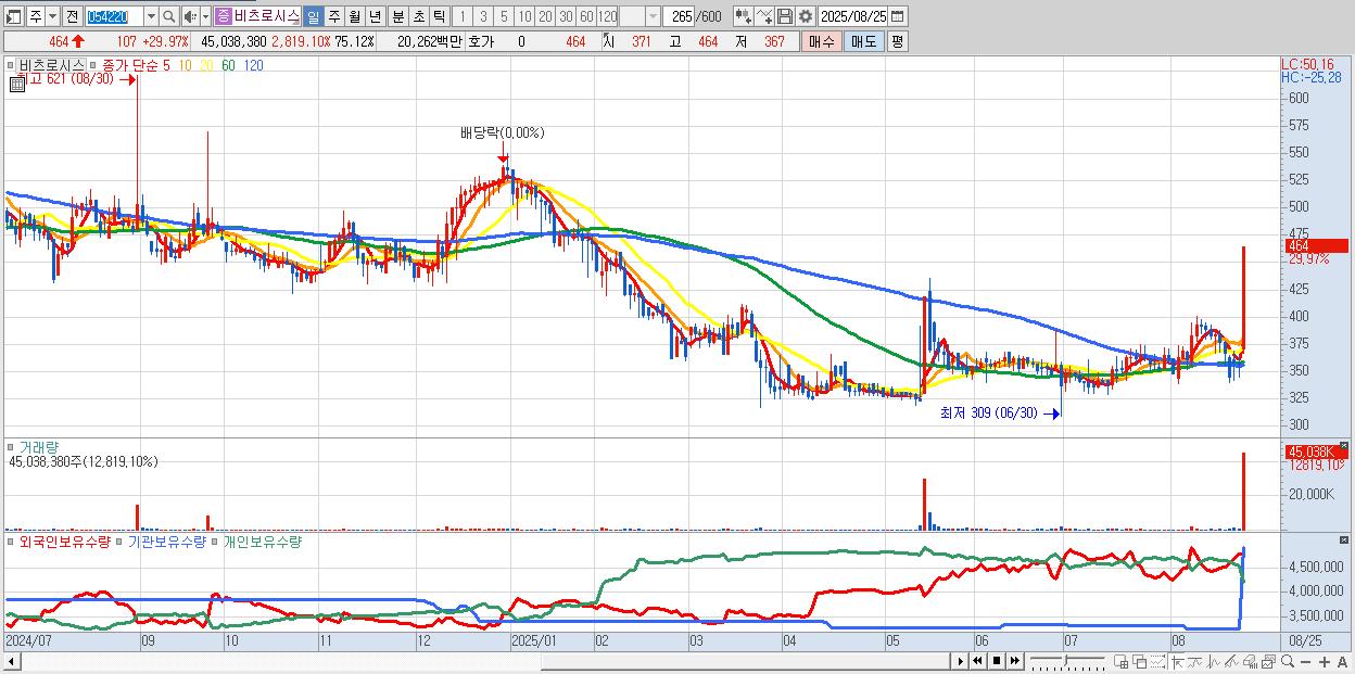 2.비츠로시스 464원 ▲ 29.97% (KOSDAQ, 054220)