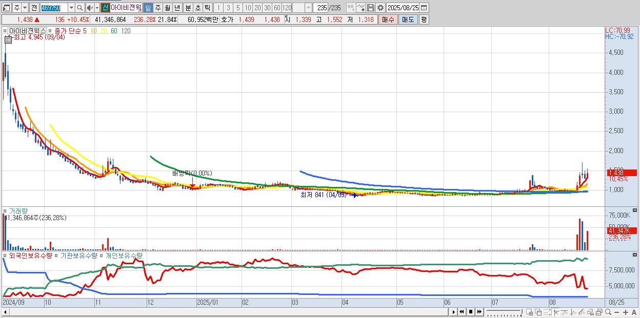- 아이비젼웍스 (1,438원 ▲ 10.45% , 시총: 488억, 거래량: 41,346,864, 거래대금:610억)