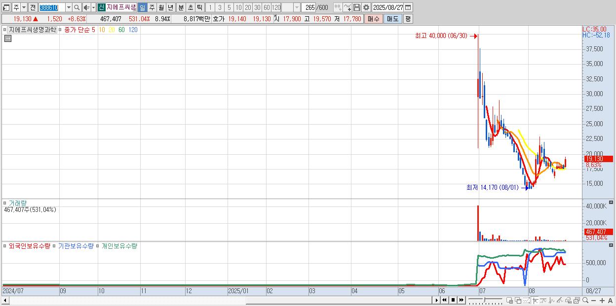 30.지에프씨생명과학 19,130원 ▲ 8.63% (KOSDAQ, 388610)