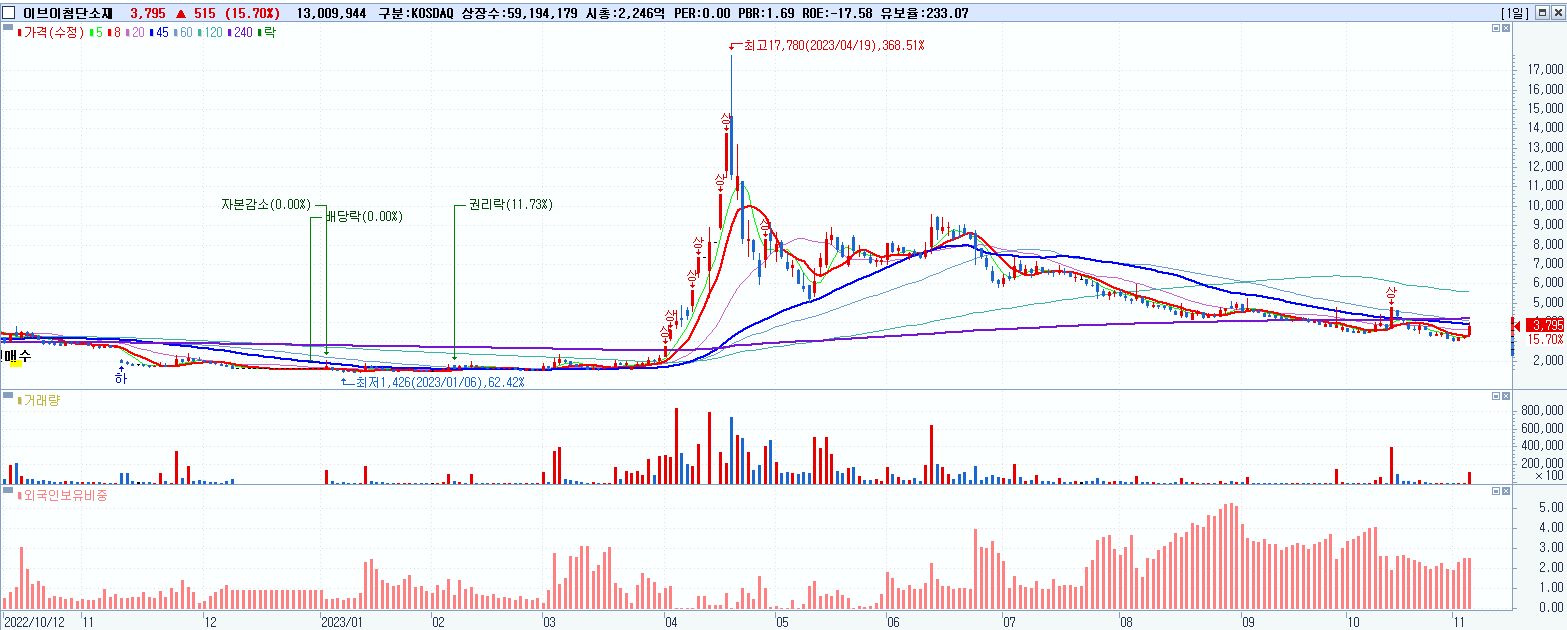 시총: 2,246억 거래량: 13,039,662 거래대금:499억
