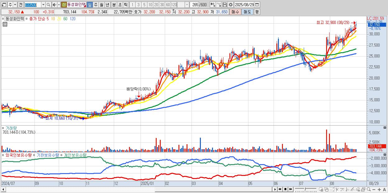 동성화인텍 32,150원 ▲ 0.31% (KOSDAQ, 033500)