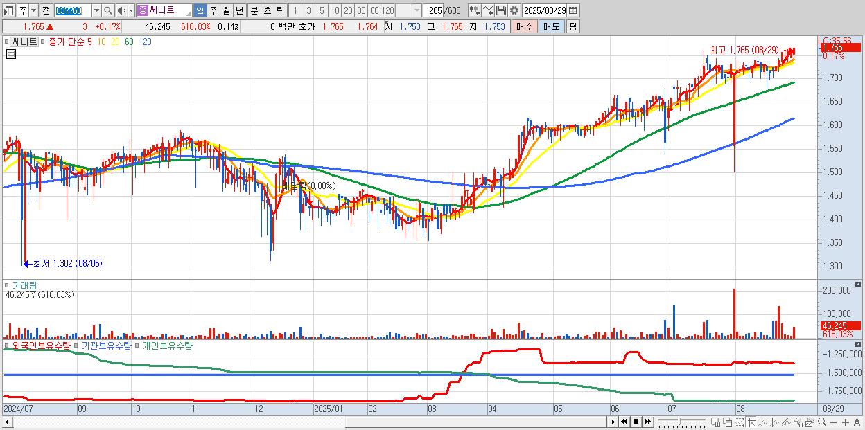 쎄니트 1,765원 ▲ 0.17% (KOSDAQ, 037760)