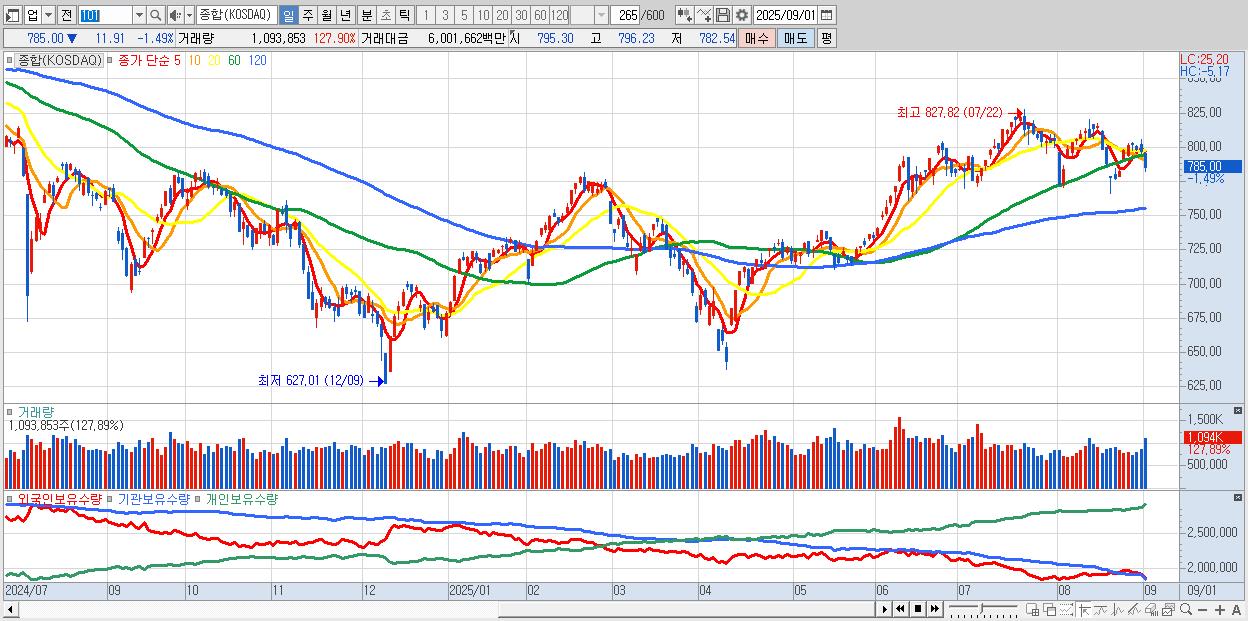 | 08/25 | 798.02 | ▲1.98% | -2,841억 | 2,268억 | 825억 | -252억 |