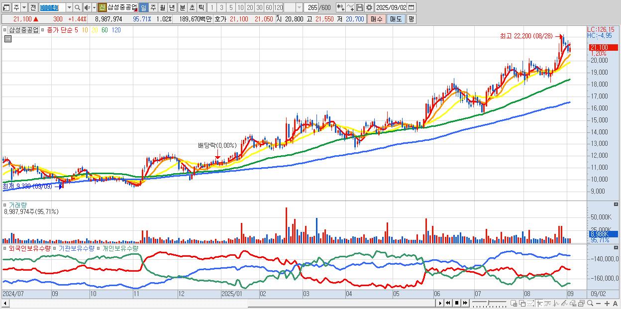 주간동아가 매일 오전 국내 증시에서 주가가 크게 상승한 종목과 그 배경을 짚어드립니다. 주가 상승을 이끈 호재와 실적 등 투자 정보와 지표도 전달합니다.한미 정상회담 이후 조선업 분야의 양국 협력에 대한 기대감이 커지면서 조선주가 연일 강세다. 9월 1일 증시에서는 특수선·방산 사업 기반을 갖춘 HJ중공업이 주목받고 있다. 한국거래소에 따르면 이날 오전 1…