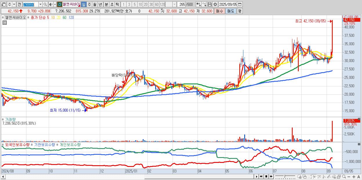 2.엘앤씨바이오 42,150원 ▲ 29.89% (KOSDAQ, 290650)