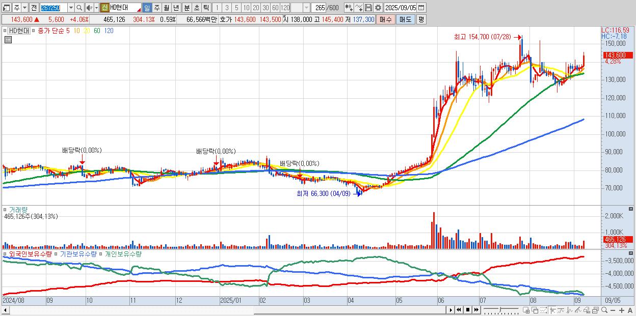 - HD현대 (144,700원 ▲ 4.86% , 시총: 114,303억, 외국인 순매수 거래금:167억)