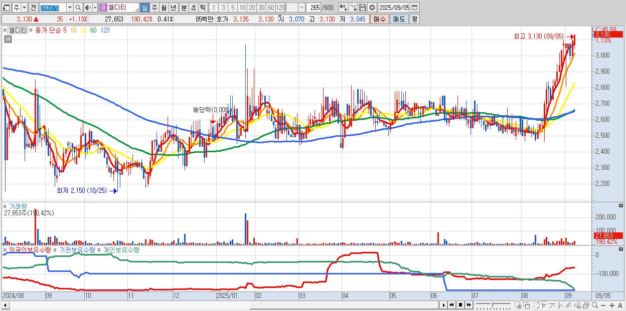 엘디티 3,130원 ▲ 1.13% (KOSDAQ, 096870)