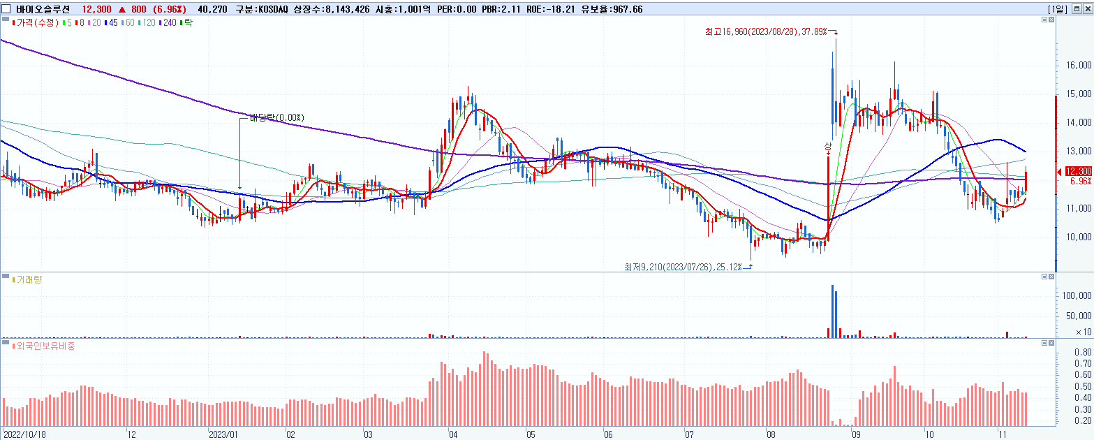 29.바이오솔루션 12,300원 ▲ 6.96% (KOSDAQ, 086820)