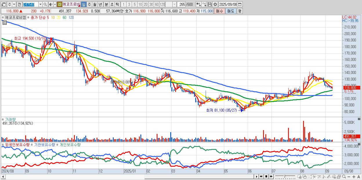 30.에코프로비엠 116,400원 ▼ -0.17% (KOSDAQ, 247540)