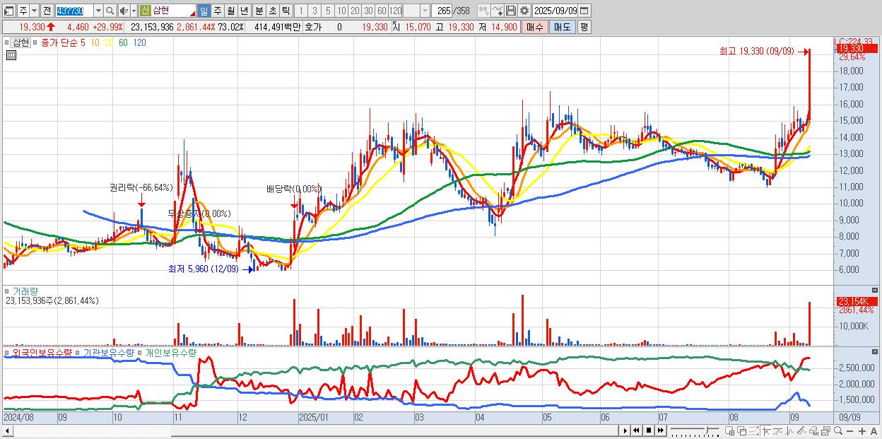 2.삼현 19,330원 ▲ 29.99% (KOSDAQ, 437730)