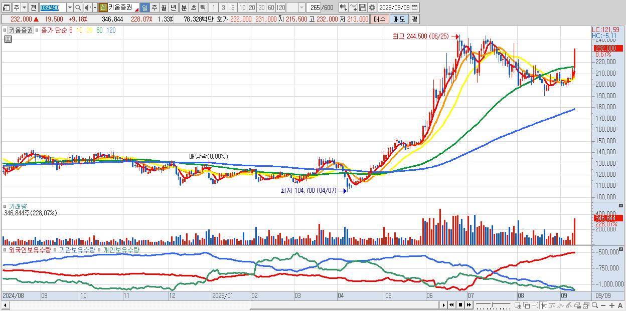 - 키움증권 (231,000원 ▲ 8.71% , 시총: 60,466억, 외국인 순매수 거래금:70억)