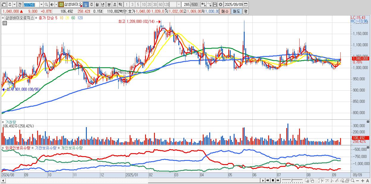 - 삼성바이오로직스 (1,041,000원 ▲ 0.97% , 시총: 740,921억, 외국인 순매수 거래금:148억)