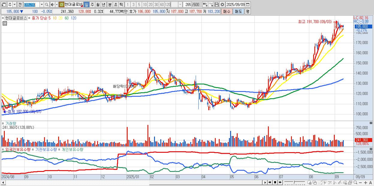 30.현대글로비스 185,800원 ▼ -0.05% (KOSPI, 086280)