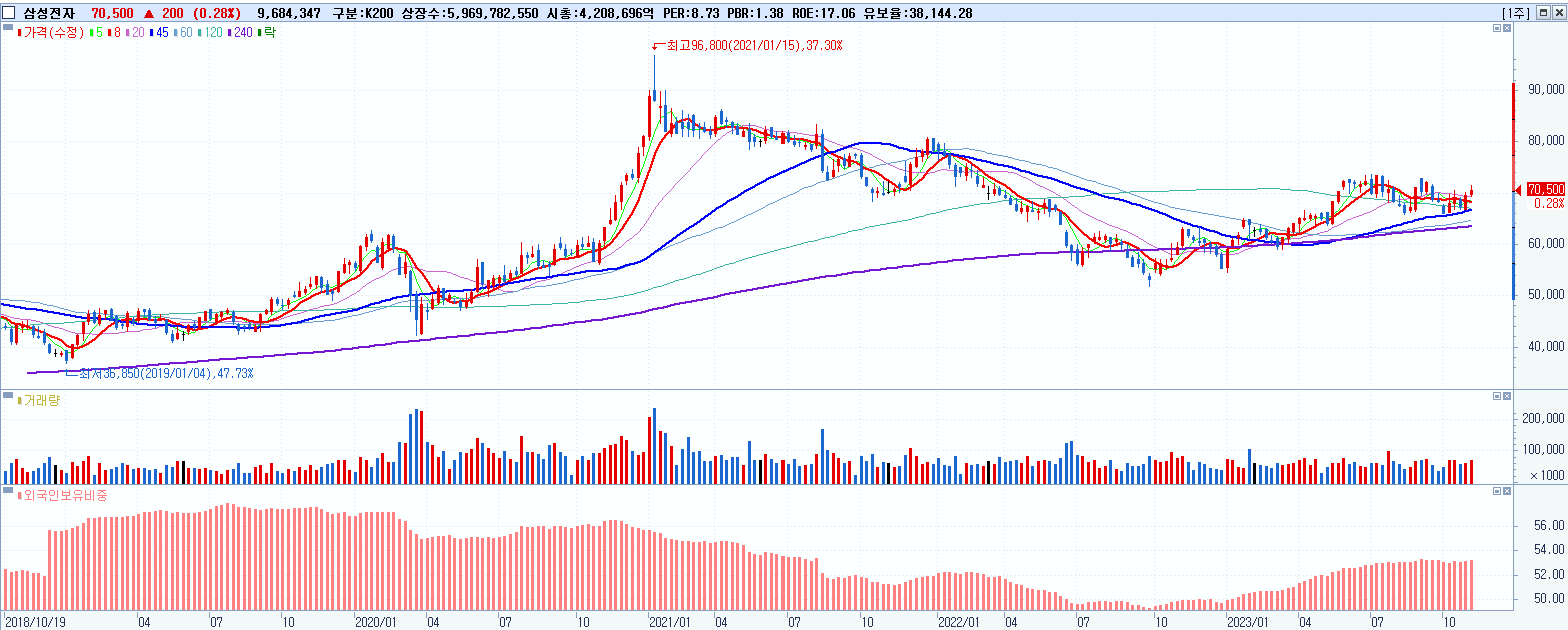 삼성전자 70,500원 ▲ 1.29% (KOSPI, 005930)