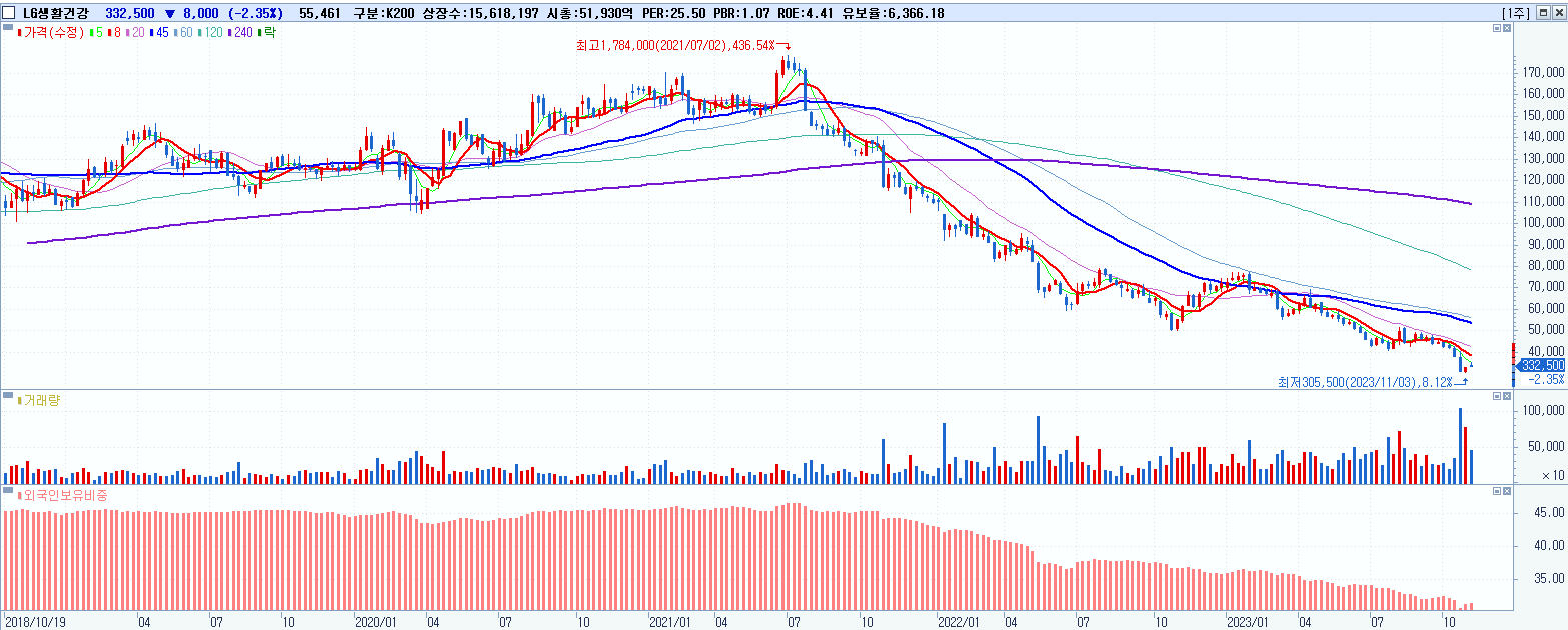 LG생활건강 332,500원 ▲ 1.37% (KOSPI, 051900)