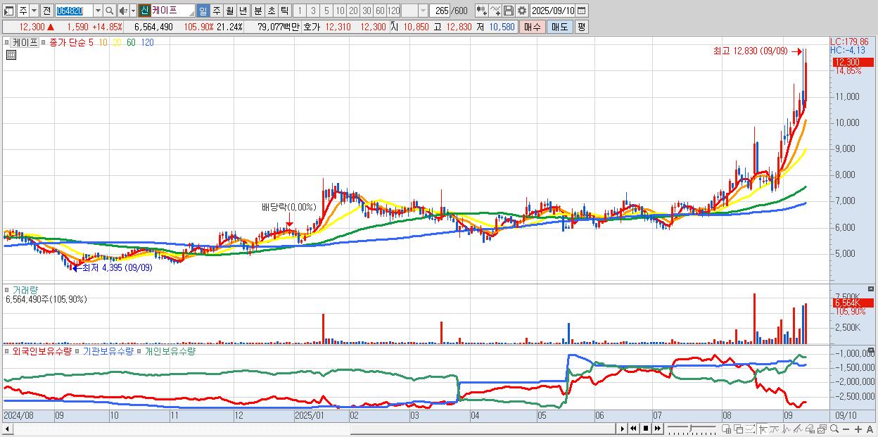 - 케이프 (12,300원 ▲ 14.85% , 시총: 3,801억, 거래량: 6,564,490, 거래대금:791억)