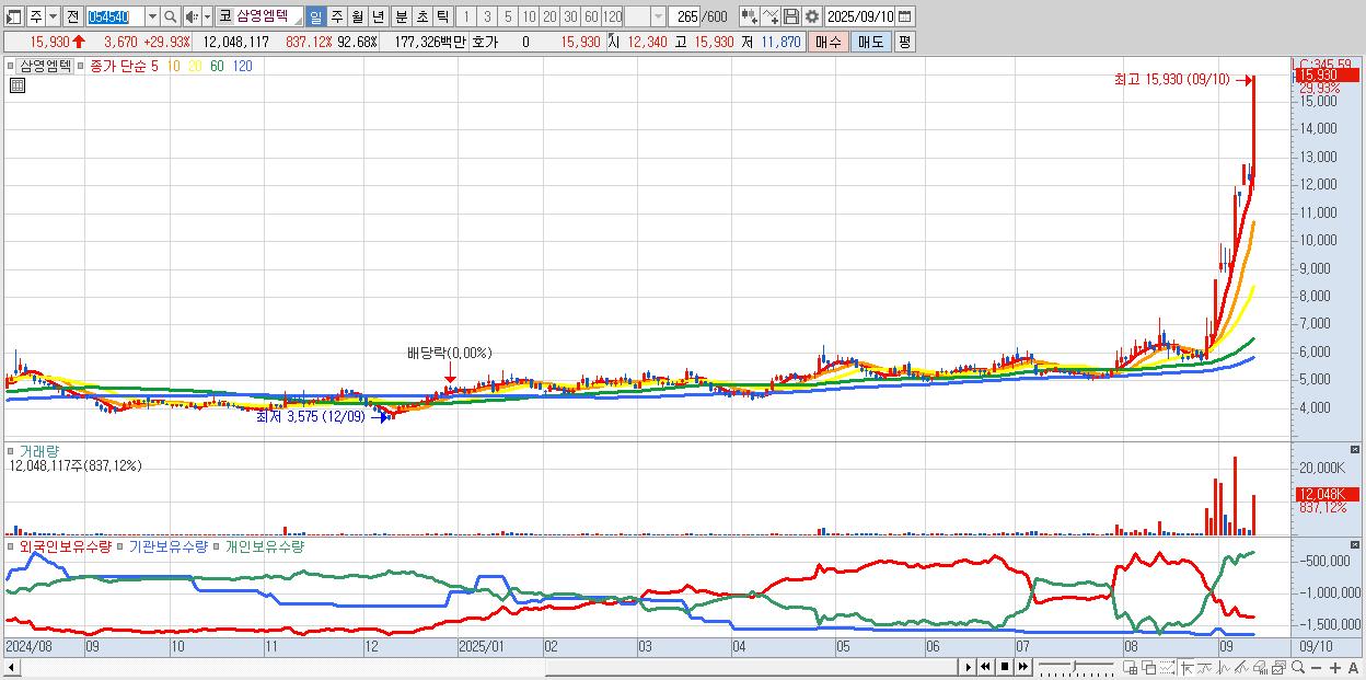 2.삼영엠텍 15,930원 ▲ 29.93% (KOSDAQ, 054540)